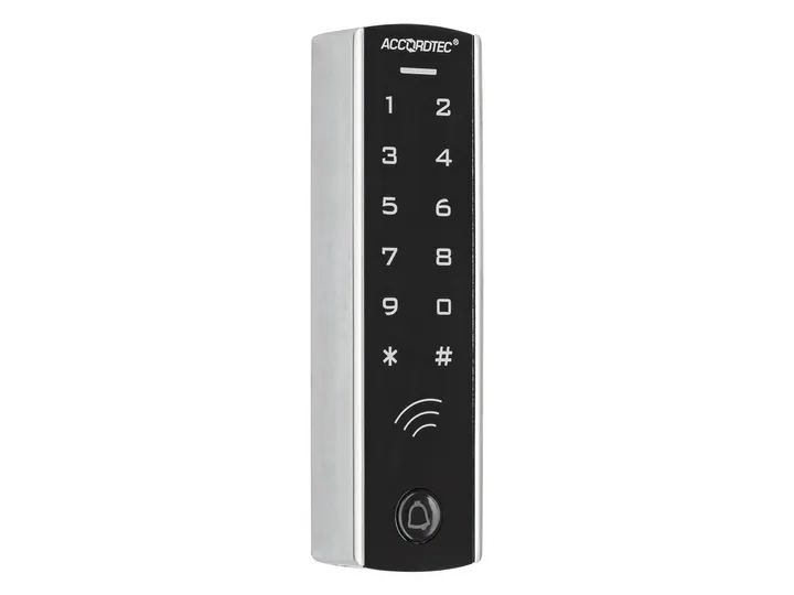 Кодовая панель со встроенным считывателем карт EM-marine, память на 2000 карт, 12V DC, wiegand 26 для доп. считывателя, антивандальный корпус, подсветка кнопок, — 45°С~+ 60°С , 155x42x22 мм.