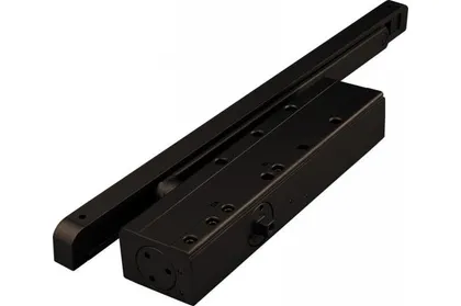 Доводчик со скользящей тягой для дверей весом до 85 кг, двухскоростной, габариты 46х235х63 мм, цвет — коричневый