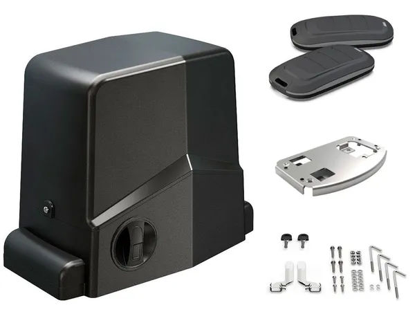Комплект для откатных ворот: электропривод со встроенным блоком управления; встроенный радиоприемник; два четырехканальных пульта; монтажный комплект. Модуль выходной шестерни — 4мм.