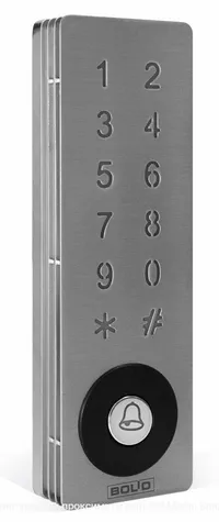 Автономный контроллер со встроенными считывателем и клавиатурой, работа с картами EM-marine, вых. интерфейс Wiegand, память 1000 карт и 8 паролей, 2 реле, U-коммут. 24 В, I-коммут. 2 А, U-пит. 10…15 В, I-потр. 200 мА, IP65, t-раб. -35…+50°С, габ.размеры 50.2х160.2х21 мм