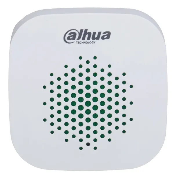 Оповещатель звуковой радиоканальный, с индикатором зеленого цвета, для работы в составе радиоканальной охранной сигнализации DAHUA; ≤84 дБ, 3 уровня громкости; f-раб.868 МГц, мониторинг температуры, двусторонняя связь и алгоритм шифрования AES128 обеспечивают стабильность и безопасность связи, 2 элемента питания CR123A (3 В); t-раб.-10…+55°C, габ.размеры 81х81х26 мм. Белого цвета.