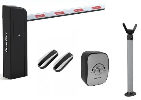 Комплект скоростного шлагбаума со стрелой 3 м, интенсивность 70 %, время открывания 2-3 сек., 220 В, 300 Вт, IP54, -40…+55 °C. В комплекте: стойка Barrier-PRO-RPD со встроенной сигнальной лампой и встроенным приемником (до 60 брелоков), стрела BOOM-3, опора стрелы V-HOLDER, ключ-кнопка KEYSWITCH-N, фотоэлементы PHOTOCELL-N