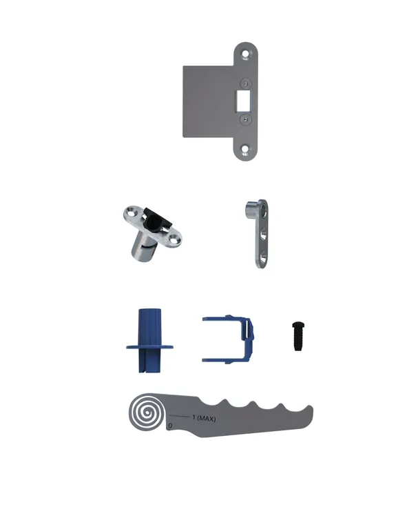 Комплект для пассивной створки SVI замка 24 мм. Установка на двери без притвора или двери с узким профилем с изогнутой или плоской ответной планкой. Ответная планка для верхней рамы 24 мм.