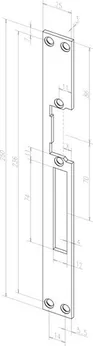 Плоская запорная планка с вырезами под язычок и ригель; универсальная; 250х25 мм; толщ. 3 мм; цинк