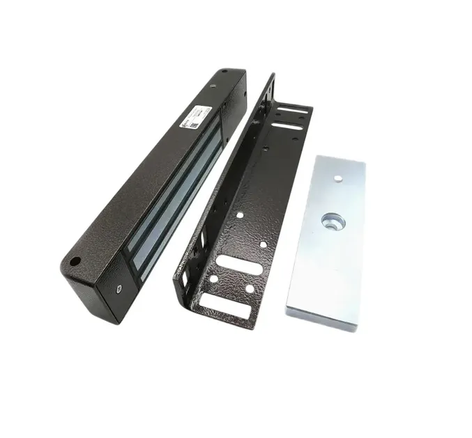 Электромагнитный замок. Коммутационный отсек с клеммной колодкой. Механический толкатель для снятия эффекта «залипания» дверной пластины замка. Замок предназначен для помещений. 12 В, 0,58 А, 7 Вт. Сила удержания 300 кг. -40…+40°C; 266х30х52 мм; 2,8 кг. Цвет бронза антик.