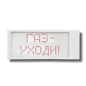Оповещатель пожарный световой, пиктограмма сформирована на светодиодной матрице; U-пит. 12…30 В, I-потр. 100 мА; IP66, t-раб. -40…+55°C, габ.размеры 350х150х40 мм. Корпус из оцинкованной стали, окрашенной в белый цвет