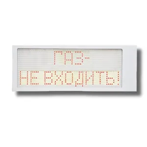 Оповещатель пожарный световой, пиктограмма сформирована на светодиодной матрице; U-пит. 12…30 В, I-потр. 100 мА; IP66, t-раб. -40…+55°C, габ.размеры 350х150х40 мм. Корпус из оцинкованной стали, окрашенной в белый цвет