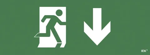 Самоклеящаяся этикетка «Фигура/стрелка вниз» для ДПА IP20/54, размер знака 240х90 мм, подходит для нанесения на аварийные светильники ДПА 2101, 2104, 2105, 5030, 5032, 5040, 5043, цвет зеленый