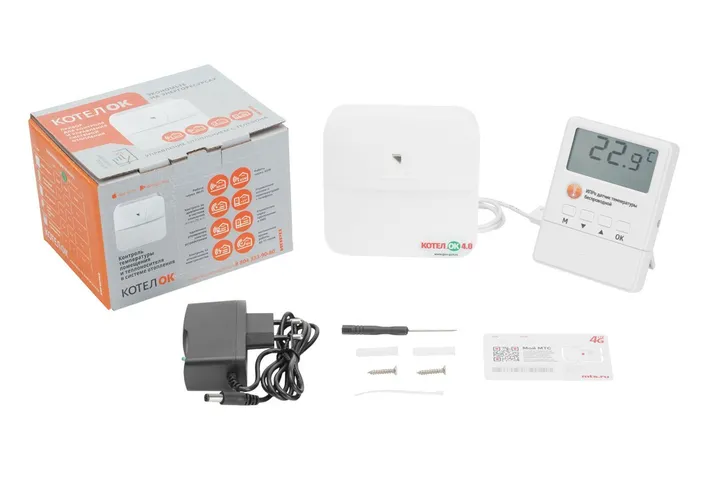 Контроллер управления котлом; программирование и управление с iOS/Android, SMS-командами, с ПК (microUSB); оповещение: Push-уведомления, SMS сообщения (до 5 номеров), дозвон при тревоге; каналы связи GSM, Wi-Fi (802.11 b/g/n); 2 входа для проводных датчиков t°C DS18B20 (1 в комплекте) + поддержка 1 беспроводного датчика t°C, t-изм. -55…+125°C, 1 вход OpenTherm (2-х проводная цифровая шина котла), 1 вход для подключения датчика давления (HK3022(5 атм), HK1100(12 атм), 2 реле с перекидным контактом (НЗ/ОБЩ/НР, 10 А, 220 В), до 10 беспроводных выходов (ИПРо радиореле, беспроводная розетка ИПРо); U-пит.12 В (блок питания в комплекте), I-потр.50 мА, резервное питание АКБ CR14500 800 мА*ч, 3.7 В (в комплекте); t-раб. -30…+55°C, 110х110х40 мм. В комплекте GSM модуль «Котел.ОК 4.0», Беспроводной термодатчик ИПРо — 1 шт, Блок питания — 1 шт, Термодатчик с кабелем 0.5 м — 1 шт