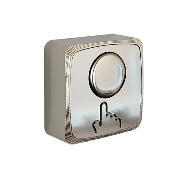 Кнопка выхода, накладная. Антивандальная механическая нормально разомкнутая кнопка (НР). Подсветка контура и нажимной части белого цвета. Материал — нержавеющая сталь, алюминиевый сплав с анодированным покрытием. Нажимная часть из полированной нержавеющей стали. Длина провода 2м. Максимально коммутируемый ток 1А при напряжении 36В. Питание подсветки +12В при потреблении 10мА. 40х40х17 мм.