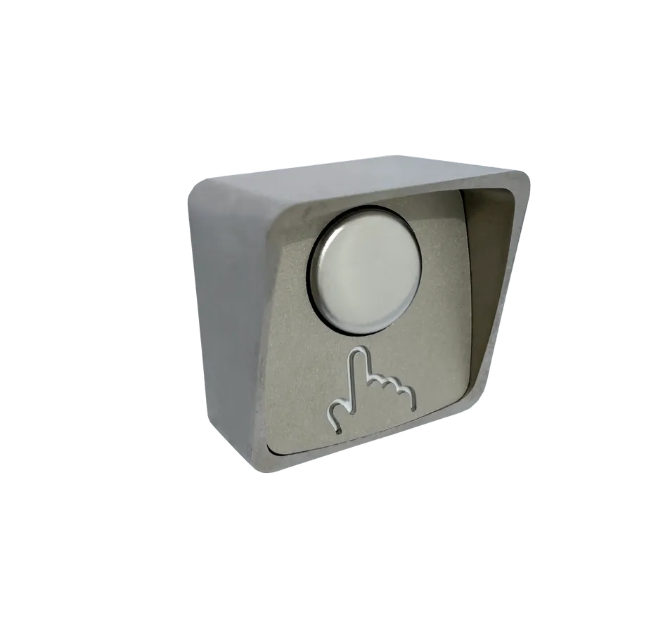 Кнопка накладная, антивандальная механическая нормально разомкнутая (НР). Подсветка контура и нажимной части белого цвета. Материал корпуса — алюминиевый сплав с анодированным покрытием. Нажимная часть из полированной нержавеющей стали. Коммутируемый ток 1А при напряжении 36В. Питание подсветки +12В, 10мА. Всепогодная, но не допускает постоянного нахождения под открытым сильным дождем.
