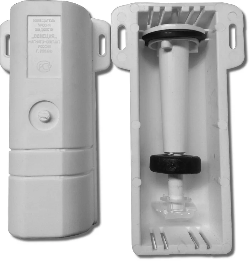 Извещатель уровня жидкости, тревож.выход НР, U-коммут.12 В, I-коммут. 0.25 А, длина выводов 500 мм, IP68, t-раб. -30…+50°C, габ.размеры 133х71х44 мм.
