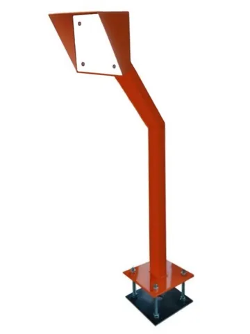 Наклонная стойка (150 град.) для установки считывающих устройств СКУД, высота 1270 мм, труба 30х60 мм, защитный кожух 150х150мм с диэлектрической пластиной, основание 180х180 мм, электрический клеммник, закладная пластина для бетонирования + комплект оцинкованного крепежа, цвет оранжевый по шкале RAL 2008.