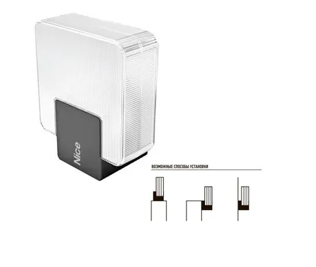Сигнальная лампа 12/24 В постоянного тока, со встроенной антенной 433 МГц, цвет белый прозрачный, светодиодная лампа, Корпус выполнен из ударопрочного пластика, IP44. Подходит для системы BlueBus.