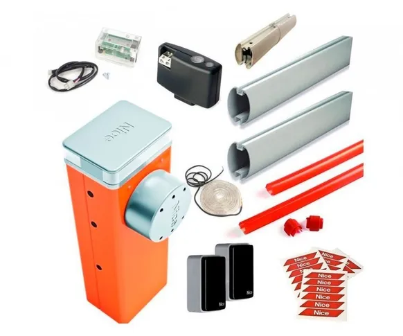 Состав комплекта: Тумба L9BAR — 1 шт; рейка шлагбаумная XBA5-5RU — 69х92х5200 мм — 1 шт; рейка шлагбаумная XBA14-4RU — 69х92х4200 мм — 1 шт; соединитель для стрел XBA9 — 1 шт; наклейки светоотражающие NK1 — 2 шт; демпфер XBA13 — 2шт; приемник OXIBD — 1 шт; фотоэлементы EPMB — 1 пара; интегрируемая светофорная лампа XBA8 — 1 шт; Светодиоды сигнальные, 8м XBA18 — 1 шт.