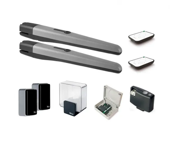 Комплект для распашных ворот с шириной проема до 5 метров и массой до 1000 кг. 230 В, 385 Вт, интенсивность 50 %, 3200 Н, IP44, -20…+50°C, 965х115х105мм. Состав комплекта: привод TO5016P — 2 шт., приёмник OXIBD — 1 шт., Пульт управления — 2 шт., Фотоэлементы Medium EPM — 1 пара), Блок управления MC800 — 1 шт., Лампа сигнальная с антенной 230В ELAC — 1 шт.