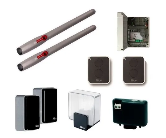 Комплект для распашных ворот WG3524HSBDKIT2. Состав комплекта: Привод WG3524HS — 2 шт, блок управления МС824H — 1 шт, приемник OXIBD — 1 шт, фотоэлементы EPMB — 1 пара, лампа ELDC — 1шт, пульт управления — 2 шт.