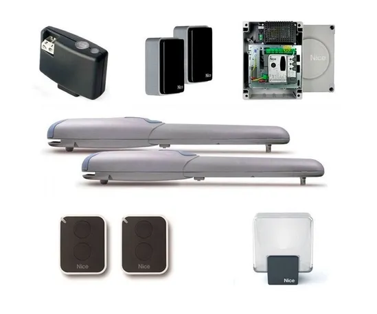 Комплект для распашных ворот WINGO4024BDKCE. Состав комплекта: Привод WG4024 — 2 шт, блок управления MC424L — 1 шт, фотоэлементы EPM — 1 пара, лампа ELDC — 1шт, приемник OXIBD — 1 шт.; пульт управления — 2 шт.