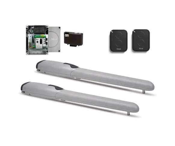 Комплект для распашных ворот WINGO5KLT. Состав комплекта: привод WG5000 — 2 шт., приёмник OXIBD — 1 шт., Пульт управления FLO2RE — 2 шт., Блок управления MC800 — 1 шт..