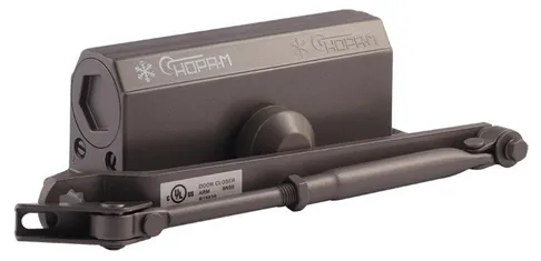 Универсальный по типу установки доводчик модели 3S с малым рычагом. Механизм устанавливается на двери весом 50–80 кг, сделанные из дерева, пластика, металла и других материалов. Рекомендуется для дверей, не требующих открывания на 180˚ (например, в тех случаях, когда открывание ограничено стеной). Для увеличения угла открывания двери до 180˚ корпус доводчика крепится на короб двери с противоположной стороны от петель.