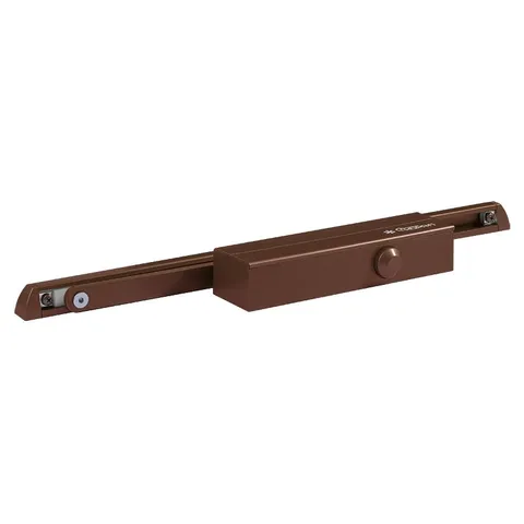 Морозостойкий дверной доводчик в плоском корпусе со скользящей тягой для дверей весом от 25 до 80 кг, класс доводчика EN2-4, монтажные размеры — 50х39 мм, -45…+60°С, 206х55х39 мм. Цвет-коричневый.