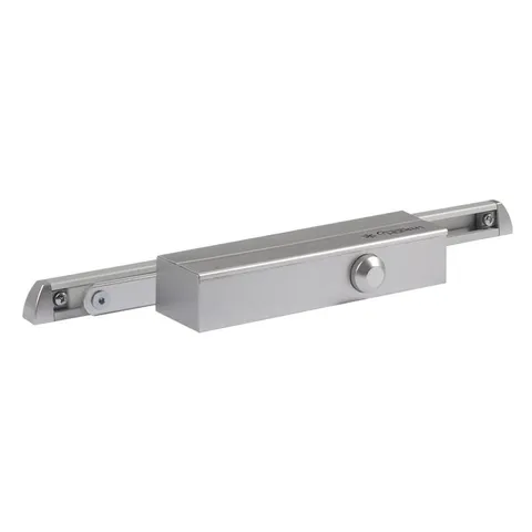 Морозостойкий дверной доводчик в плоском корпусе со скользящей тягой для дверей весом от 25 до 80 кг, класс доводчика EN2-4, монтажные размеры — 50х39 мм, -45…+60°С, 206х55х39 мм. Цвет-серебро.