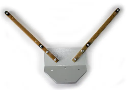 Узел с двумя стеклопластиковыми консолями для крепления двух блоков БПРД (БПРМ) «Импульс-Мини» смежных участков на плоскость заграждения, стены здания или на другие электропроводные предметы.