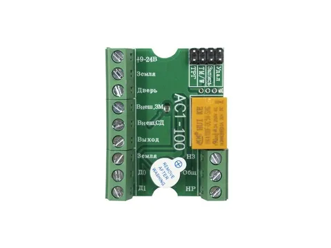 Контроллер Optimus AC1-100; 1000 пользователей; Wiegand 26, 34,42; коммутируемый ток замка-до 3.5 Ампер (DC 12В); длительность открытия двери-3…127 секунд (программируемая); индикация; зуммер; 9-24В DC, -40…+50°C; 48х32х16 мм.