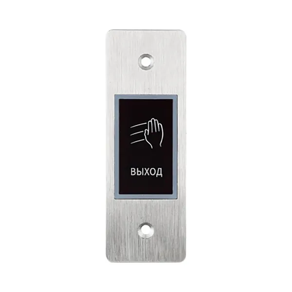 Кнопка на выход бесконтактная, врезная, IP66, группа контактов НЗ/НР, 12/24 В, таймер задержки, подсветка синий/зелёный, дальность считывания 5-25 см. Материал нержавеющая сталь, -20…+65°C, 115х40х15 мм.