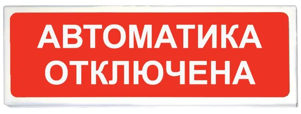 Световой указатель (табло) «Автоматика отключена», U-пит. 12 В, I-потр. 30 мА, метал. корпус, IP41, t-раб. -30…+55°С, габ.размеры 290х100х20 мм