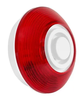 Оповещатель светозвуковой, стробоскоп, красное свечение, 105 дБ, раздельное включение, U-пит. 12 В, I-потр.свет. 20 мА, I-потр.звук. 25 мА, IP52, t-раб. -30..+55°C, габ.размеры 90х90х43 мм