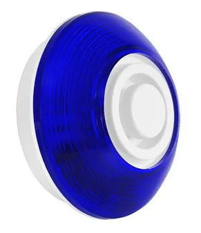 Оповещатель светозвуковой, стробоскоп, синее свечение, 105 дБ, раздельное включение, U-пит. 12 В, I-потр.свет. 20 мА, I-потр.звук. 25 мА, IP52, t-раб. -30..+55°C, габ.размеры 90х90х43 мм