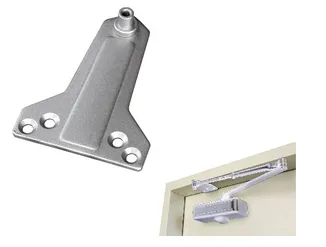 Кронштейн параллельной тяги из окрашенной стали подходит для доводчиков ST-DC001, ST-DC002, ST-DC003, ST-DC004 и ST-DC036BC. Цвет — серебряный, 112х55х15 мм.