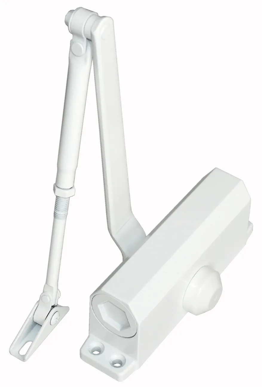 Доводчик двери c тягой EN 1, до 30 кг, 750 мм, 2-х скор., монтажные размеры 162х22 мм, -35…+70°C, WT — белый, 179х40х65 мм