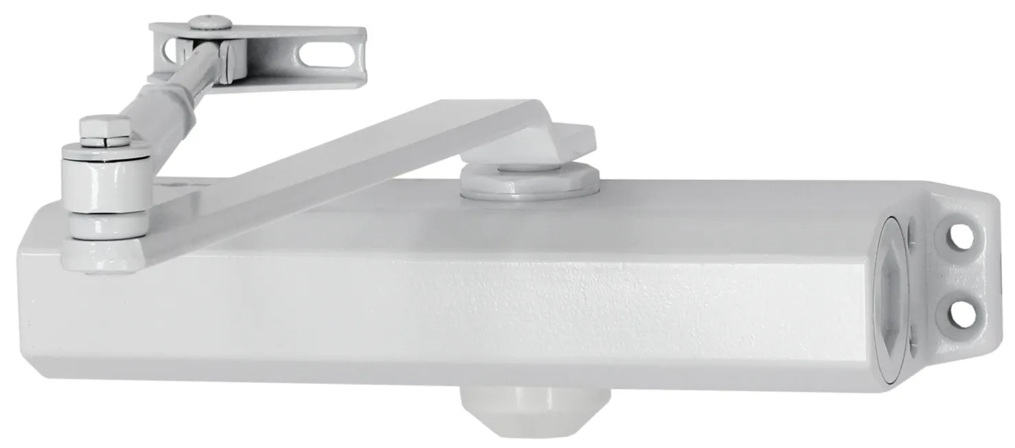 Доводчик двери c тягой EN 1-4, 15 — 85 кг, 1100 мм, 2-х скор., тормоз открывания, задержка закрывания, белый, монтажные размеры 230х19 мм, -35…+70°C, 248х45х72 мм.