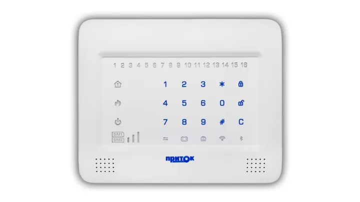 Сенсорная клавиатура для работы с приборами Приток-А-КОП на 16 ШС; встроенный считыватель NFC; до 64 идентификаторов записываемых в клавиатуру, RS-485, TouchMemory, miniUSB; U-пит.10.2…14.5 В, I-потр.150 мА; t-раб.-10…+50°С, 197х162х38 мм