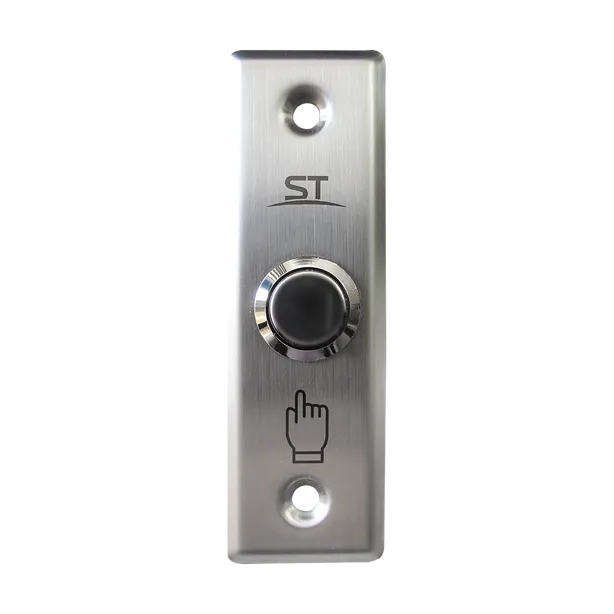 Кнопка выхода механическая; тип контактов: COM/NO (не более DC 36В/3A). Материал корпуса нержавеющая сталь. Врезной монтаж. -35…+55°С, IP40, 91х28х16 мм.