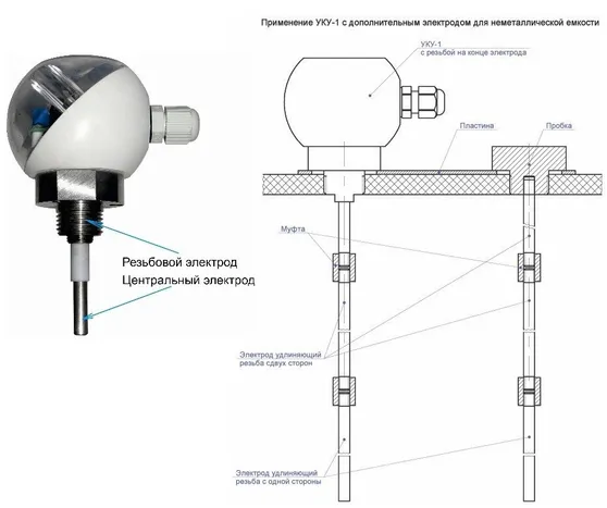 Устройство контроля уровня жидкости, длина электрода 53 мм, материал электрода нерж.сталь, с резьбой на конце электрода для наращивания длины; 4 уровня чувствительности ( по составу жидкости), 2 оптореле НЗ/НР (220 В, 0.1 А), 2-х цветный индикатор состояния; U-пит. 9…30 В, I-потр. 6.1 мА, Р-потр. 0.19 Вт; IP54, t-раб. -40…+50°С, габ.размеры 115х65х87 мм, Ø подкл. провода 3…6 мм