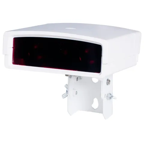 Извещатель пожарный дымовой оптический линейный; однопозиционный; четырёхпроводный; дальность зоны обнаружения 8…70 м (до 100 м с дополнительным отражателем); индикация режимов работы; U-пит.10.5…24 В, I-деж.13 мА; IP40, t-раб.-30…+55°C, 144х143х69 мм (извещатель), 200х200х3 мм (отражатель).