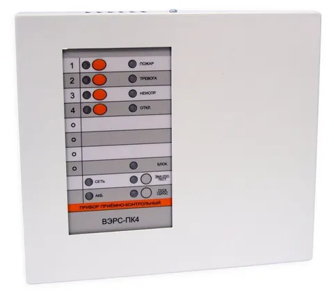 4 ШС (охранные, пожарные, технологические), 3 реле ПЦН, выходы ОК с током нагрузки до 1А с контролем линий оповещения, вход ТМ, RS-485, конфигурирование с помощью ВЭРС-ПК Prog, напряжение питания 220 В, вход внешнего РИП, под АКБ 12 В /4,5 Ач, металлический корпус, считыватель ТМ в комплекте